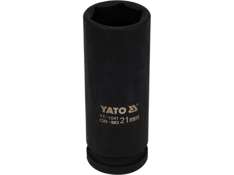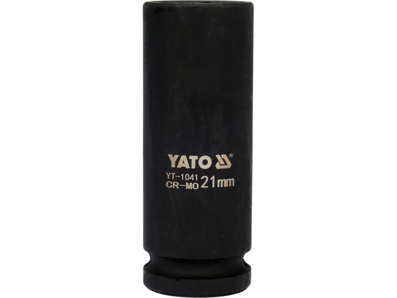 Yato márka 1/2'' 21mm hosszú ütéscsillapító foglalat. a különleges CrMo SCM-440 ötvözött acélból készült, amely kétszer akkora szakítószilárdsággal rendelkezik, mint az átlagos szénacél, és háromszoros a hozamereje az alkalmazott acél köszönhetően a foglalatok nem törnek el az ütéses munka hatására, és hosszabb ideig megőrzik névleges méretüket