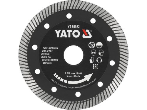 YATO Gyémánt vágókorong 125 x 1,3 x 10 x 22,2 mm turbó