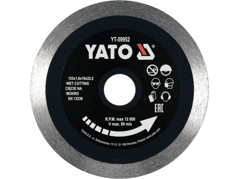 YATO Gyémánt vágókorong 125 x 1,6 x 10 x 22,2 mm folytonos