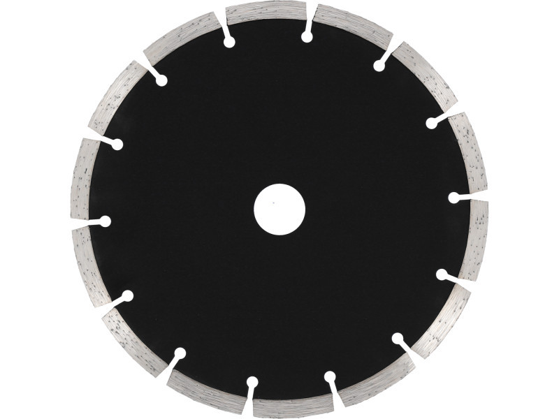 Diamant védőpajzs sarokcsiszolókhoz, 8 mm magas, lézerhegesztéssel rögzített szegmensekkel. "Száraz" munkavégzésre tervezve. Ajánlott keményített beton, tégla, szilikáttégla, gránit, fal, kő vágására. Ajánlott sebesség kb. 8000 fordulat/perc.