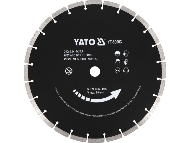 YATO Gyémánt vágókorong 350 x 3,4 x 10,0 x 25,4 mm szegmentált