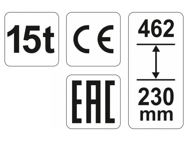 Professzionális YATO márkájú hidraulikus emelő, amely precízen adagolja az olajáramot. Az emelő emelőkapacitása 15 tonna, az emelési tartomány pedig 230 mm-től 462 mm-ig terjed. Kicsi mérete és súlya miatt könnyen mozgatható és tárolható. Elengedhetetlen az autószerelő műhelyekben és járműszerviz állomásokon.