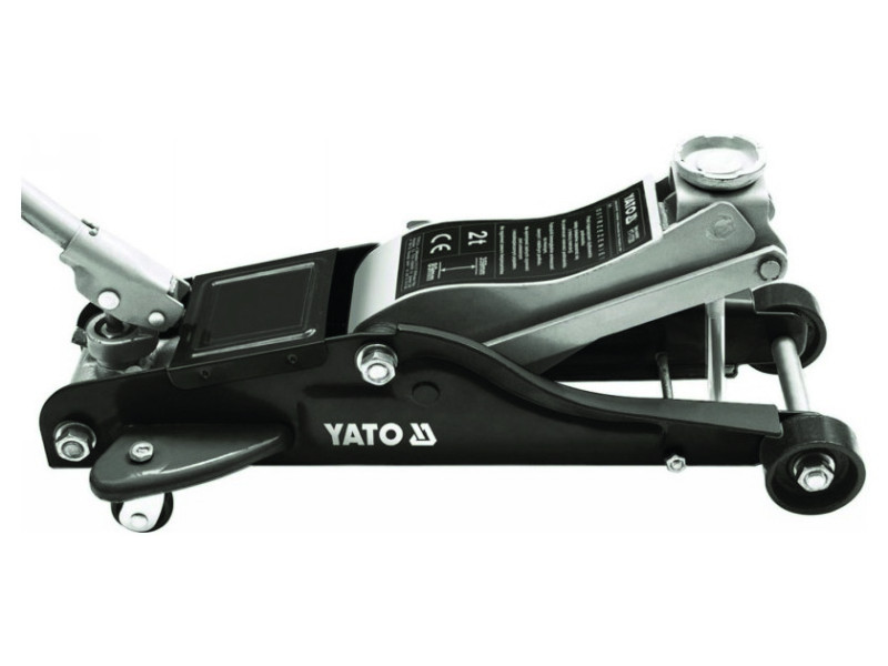 Magas minőségű, alacsony profilú Yato autóemelő. Szerkezete egy hidraulikus meghajtású, vízszintes tengelyben működő fogantyún alapul. Az emelő jellegzetes tulajdonsága a kis kezdeti magasság, így az emelőt minden autóhoz be lehet tolni, különösen hasznos az alacsony sportautók számára. Nélkülözhetetlen az autószerelő műhelyekben, gumiabroncsoknál és járműszerviz állomásokon. - emelő - emelőkar - felhasználói kézikönyv - garancialevél - bőrönd Használati figyelmeztetések: Az emelő használata előtt gondosan olvassa el az utasításokat. Ne lépje túl az emelő emelési kapacitását. Elengedhetetlen, hogy az emelőt szilárd, egyenes és stabil felületre helyezze. Ne végezzen tevékenységeket egy emelt és nem biztosított jármű alatt. Ne állítsa be a biztonsági szelepet.