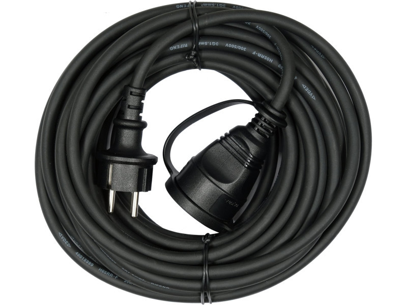 Porhuzamos kábellel ellátott építőipari hosszabbító kábel, por- és fröccsenésbiztos aljzattal. A klórozott polietilén (CPE) bevonatú kábel jól működik beltérben és kültérben is. Ellenáll az olajoknak, savaknak, a legtöbb oldószernak és a napfénynek. Nem merevedik meg a hidegben. Nem terjeszti a tüzet. Jellemző rá a magas öregedési ellenállás. maximális üzemi feszültség: ~250 V maximális terhelés: 16 A folyamatos működés: akár 3680 W-ig háromvezetékes rézdrót, 1,5 mm2 sodrott típus külső átmérő bevonattal: ~9,0 mm bevonat anyaga: CPE egyvezetékes szigetelőanyag: EPDM a por- és fröccsenésbiztos IP44 aljzat védelmet nyújt a nedvesség vagy a por és a homok ellen.