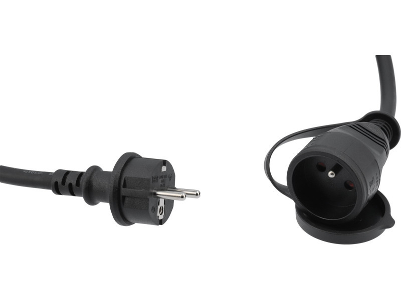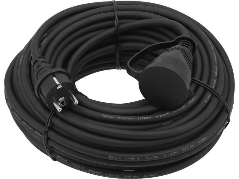 Porházható hosszabbító kábel por- és fröccsenő víz ellen védett aljzattal. A klórozott polietilén (CPE) bevonatú kábel jól működik beltéren és kültéren egyaránt. Ellenáll az olajoknak, savaknak, a legtöbb oldószernak és a napfénynek. Nem merevedik meg a hidegben. Nem terjeszti a tüzet. Jellemző rá a nagy ellenállás az öregedéssel szemben. maximális üzemfeszültség: ~250 V maximális terhelhetőség: 16 A folyamatos működés: akár 3680 W-ig háromvezetékes rézdrót, 1,5 mm2 sodrott típus külső átmérő burkolattal: ~9,0 mm burkolat/bevonat anyaga: CPE egyetlen vezető szigetelőanyaga: EPDM az IP44 por- és fröccsenő víz ellen védett aljzat garantálja a védelmet a nedvesség vagy por és homok ellen.