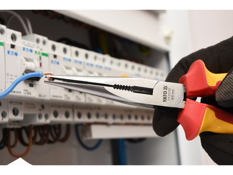 YT-21155 hosszú, egyenes fogó VDE szigeteléssel, kiváló minőségű CrV acélból készült. Félkör alakú és keskeny állkapocs profillal, nagyon pontos horonyokkal és tartós vágóelemmel.
