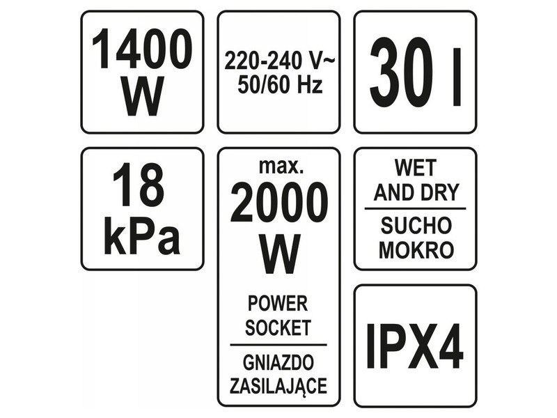 YATO műhelyporszívó 1400W teljesítménnyel és 18 kPa szívóerővel. A porszívó tartálya 30 L kapacitású. A porszívó rendelkezik egy teleszkópos, antistatikus csővel. Továbbá beépített csatlakozóval rendelkezik, amely lehetővé teszi a szerszámgépek működtetését.
