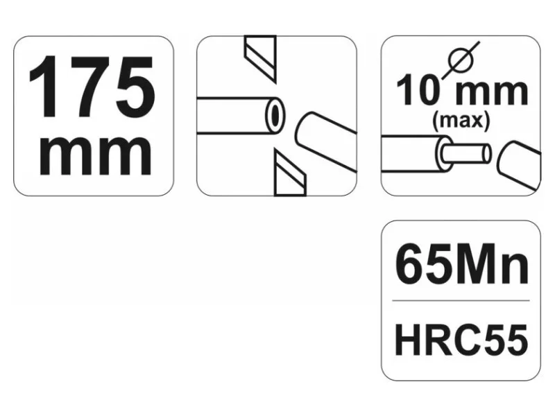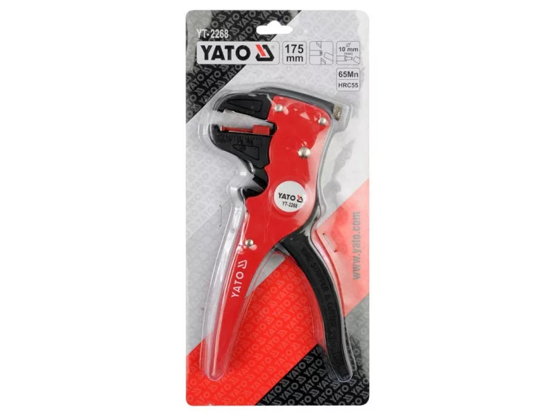 Automatikus szigetelés levágó fogó YT-2268. gyors és automatikus szigetelést lehúzó mechanizmus mind lapos, mind kerek vezetékekhez, 0,5 mm2-től 6,0 mm2-ig terjedő keresztmetszettel és legfeljebb 10mm átmérőig képes az vezeték lehúzás hosszának beállítására a munkaállkapcsok csúcsai HRC55 szintre edzett acélból készültek lehetőség a vezeték vágására YT-2268 fogó alkalmazási táblázat:   Használati figyelmeztetések: Figyelmeztetés! Mindig használjon személyes védőfelszerelést a munka során.