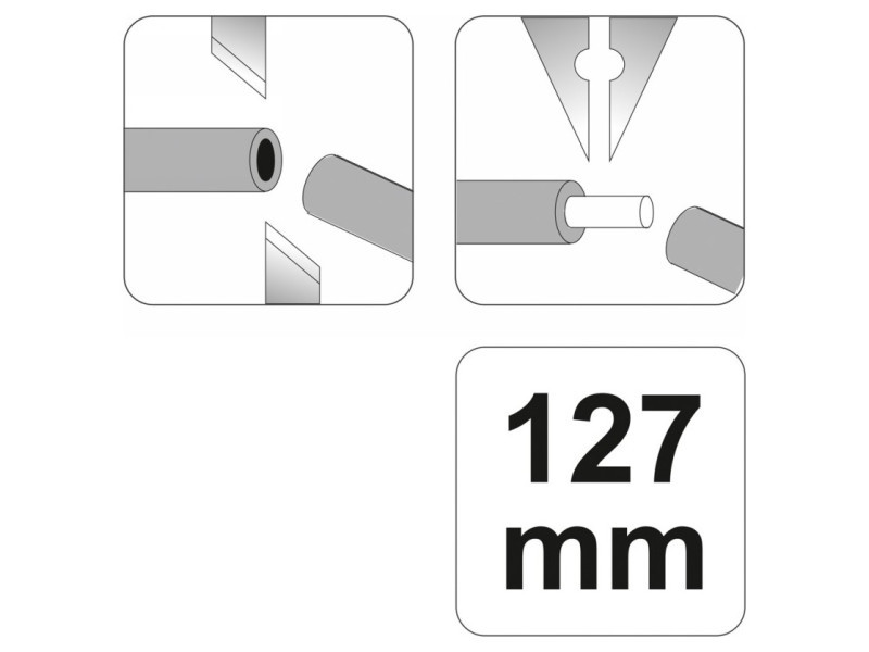 A YT-2261 típusú vágó kiváló minőségű edzett acélból készült műanyag nyélvédőkkel.test és vágóállás edzett szénacélból készültképes drótok vágására legfeljebb 1,5 mm2 keresztmetszettel és maximum 3 mm átmérővelkinyíló rugóMini elektromos drótvágók táblázata:IndexMax. vágási átmérő (mm)  Hosszúság (mm)YT-22623125YT-22603125YT-22613125YT-22633130450203135 Használati figyelmeztetések: Figyelem! Mindig használjon személyes védőfelszerelést a munka során.