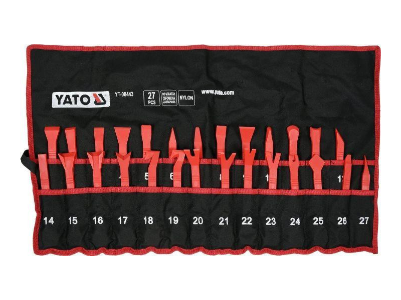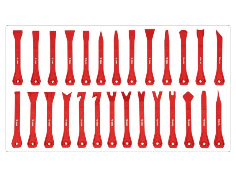 Speciális kihúzók kárpitok és autó belső burkolatok eltávolításához.27 darab, különböző formákkal és ívekkelspeciális profilok lehetővé teszik a karok használatát a kárpitcsatok eltávolításakorkeményített nylonból készültnem karcolják a kárpitot vagy a lakkozott részeketpraktikus hordtáskában
