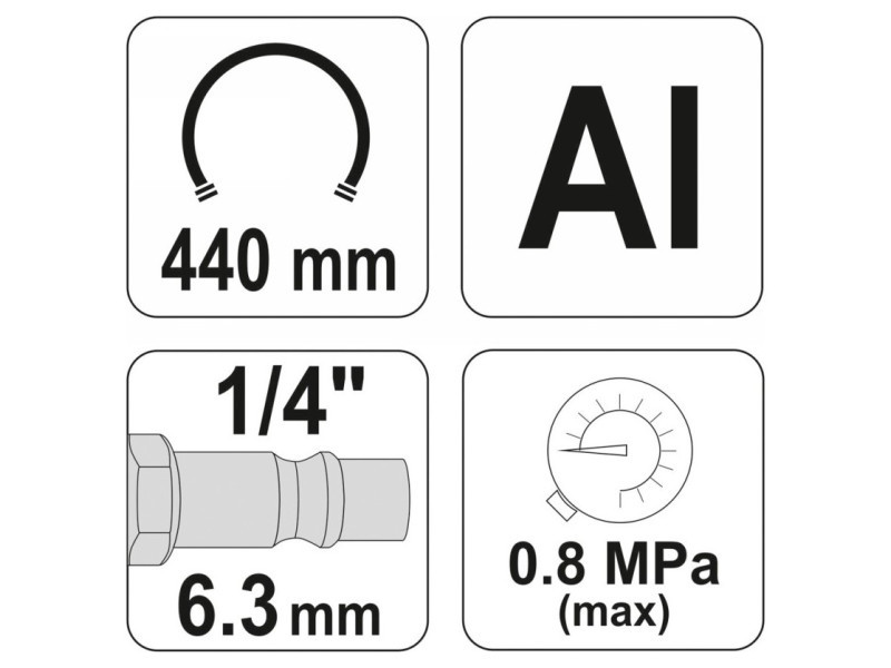 Professzionális, YATO nyomásmérővel ellátott pumpálófegyver. alumínium test a fegyveren, csúszásgátló anyaggal bevont gumiborításban védett manométer tömlő hossza:40 cm max. munkanyomás: 0.8 MPa csatlakozás:standard súly: 330 g A készülék nem motorjárművek gumiabroncsaihoz készült. Adapterekkel (nem tartozék), lebegők, matracok stb. is felfújhatók. A fegyver nyomásmérővel van ellátva, amellyel ellenőrizhető a pumpálni kívánt termék légnyomása, és csúszásmentes fogantyúval rendelkező alumínium testtel. Használati figyelmeztetések: A készülék nem motorjárművek gumiabroncsaihoz készült