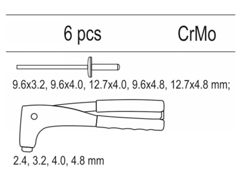 YATO Kézi popszegecshúzó és szegecsek 6 részes (fiókbetét)