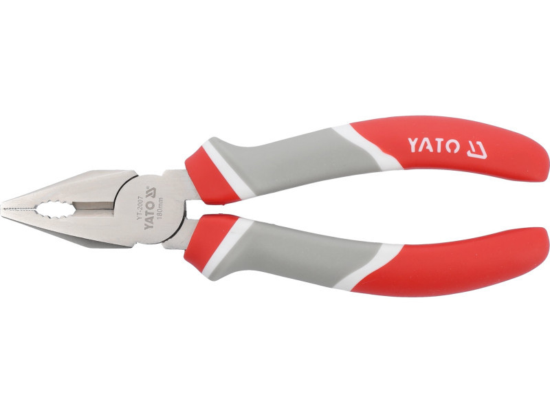Univerzális fogó, 180 mm hosszúságban, a YATO-tól. Standard állkapcsok nagyon precízen kialakított barázdákkal és tartós vágóelemmel. A nyél kényelmes műanyag háromkomponensű kupakkal borított.