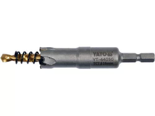 Átmérő: 16MM, VÁGÁSI MÉLYSÉG: 25MM, TELJES HOSSZ: 103MM, Sintered Carbide YG10X, MAGANYAG: SZÉNACÉL, PILOT FÚRÓ ANYAGA: HSS4341 TIN, MÉRET: 6MM, HEX-6.3MM NYÉL,  1 CSOMAG. IMBUSZKULCS, 1DB. KIFÚVÓ RUGÓ, ALKALMAZÁS: KONSTRUKCIÓS ACÉL (HEA, HEB Tornyok, ELEKTROMOS OSZTÓK, GÁZ DOBOZOK), ROZSDAMENTES ACÉL, Műanyag (ABS, PE, PVC, ALSO üvegszállal erősített). Használati figyelmeztetések: Figyelem! Mindig használjon személyes védőfelszerelést munka közben.