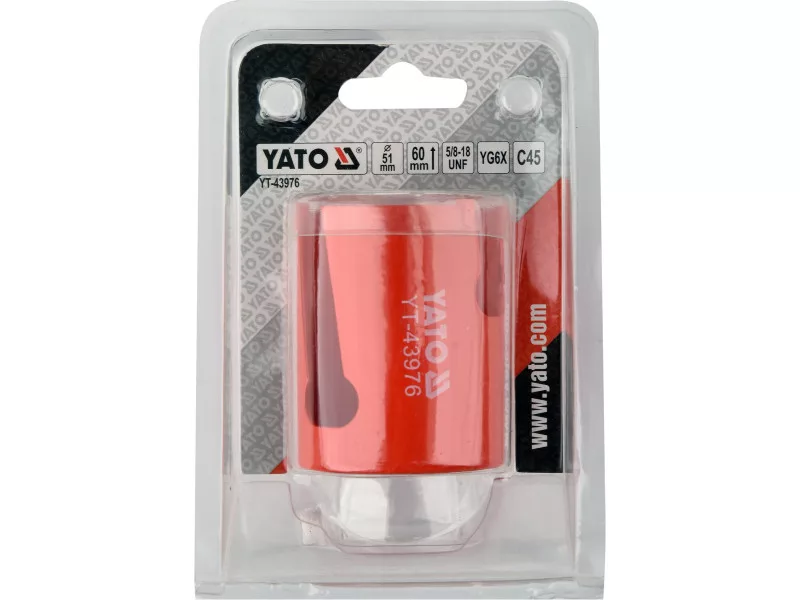 Univerzális koronafúrónem csak fában vagy kompozit anyagokban való munkavégzést teszi lehetővé, hanem a leggyakrabban használt ásványi anyagokban is, mint például a poroterm vagy a szilikát blokkokuniverzális alkalmazhatósága miatt különösen hasznos a szerelők számára. Lehetővé teszi a munkavégzést nem csak fában vagy kompozit anyagokban, hanem a leggyakrabban használt ásványi anyagokban is, mint például a poroterm blokkok, suporex vagy szilikát blokkokuniverzális alkalmazhatósága miatt különösen hasznos a szellőztetésben, légkondicionálásban, fűtésben és elektromos szerelők számáraa fúrás egyéb ásványi anyagokban, mint pl. a suporex és a kerámia blokkokban gyorsabb, mint a gyémánt fúrók használata esetén.elérhető Yato márka pilótafúrók villás végű (YT-43990), valamint HSS (YT-43991, YT-43992)teljes program koronafúróval, 16 mm-től 152 mm-ig terjedő átmérőkkel. Használati figyelmeztetések: Figyelem! Mindig használjon személyes védőfelszerelést a munka során.