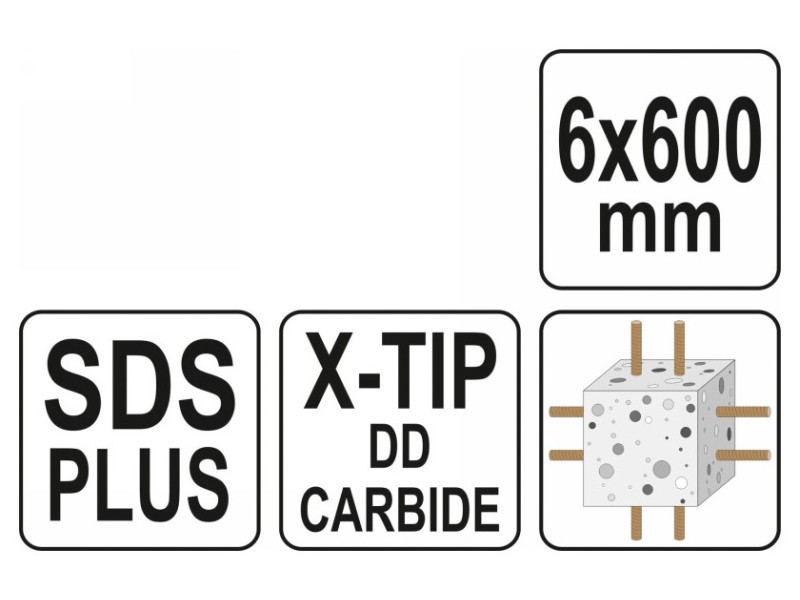 YATO Kőzetfúró 6 x 600/525 mm négyélű SDS-Plus