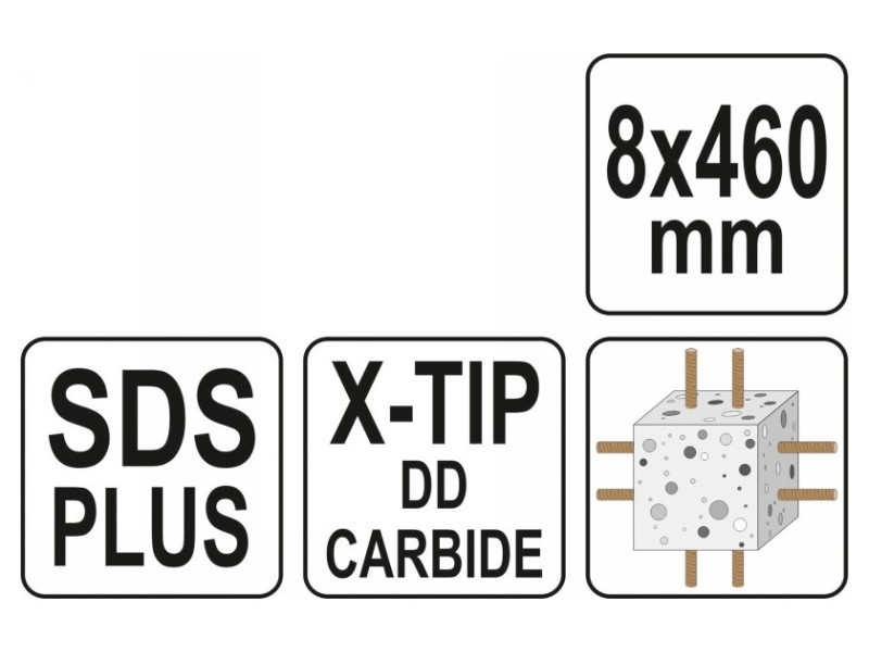 YATO Kőzetfúró 8,0 x 460/375 mm négyélű SDS-Plus
