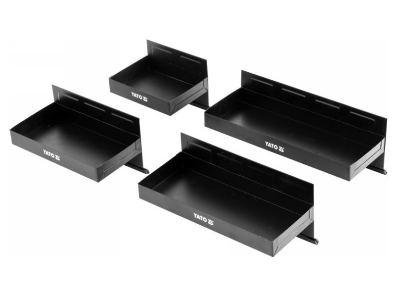Egy 4 darabból álló, strapabíró acéllemezből készült polc, ideális kis szerszámok és tartozékok tárolására használt autójavító műhelyekben. ; Rz SW & oacute; j műhelybútor szett alatt látható a bútorok mintaelrendezése, amelyek a kínálatunkban elérhetőek. & nbsp; Teljes rendszerbútor ajánlatunk - továbbiak megtekintése