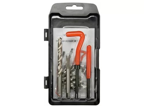 Úgy tervezték, hogy a törött meneteket újakra cserélje. A készlet elemei tartós rozsdamentes acélból készültek.A készlet tartalma (30 elem):HSS fúróHSS menetvágófúró és ütőspeciális menet javító rugókMéret: M8 x 1.25 mm Használati figyelmeztetések: Figyelem! Mindig használjon személyes védőfelszerelést a munka során.