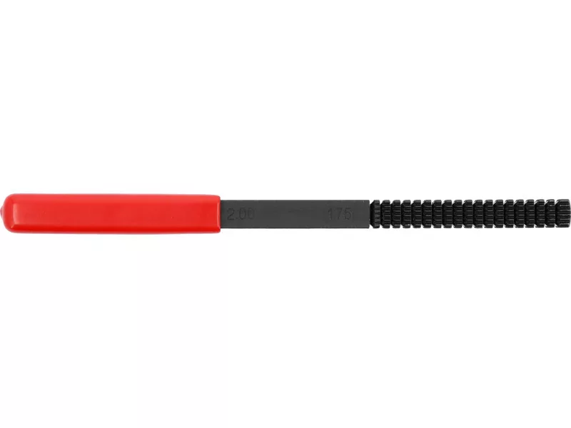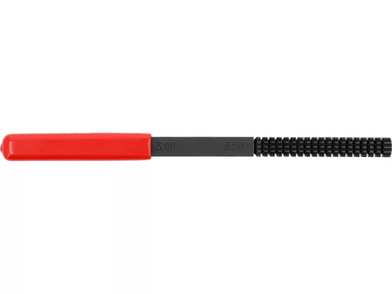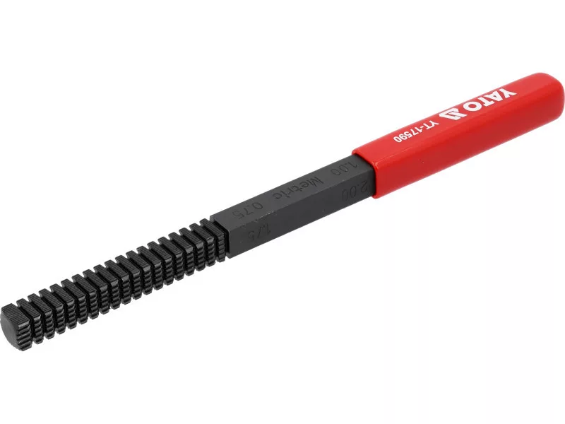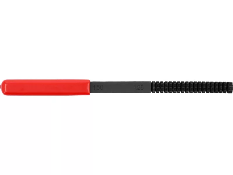 Menetjavító fájl a következő menetemelésekkel: 0.75, 1.0, 1.25, 1.5, 1.75, 2.0, 2.5, 3.0 mm. Magas minőségű 40Cr acélból készült, műanyag nyéllel.