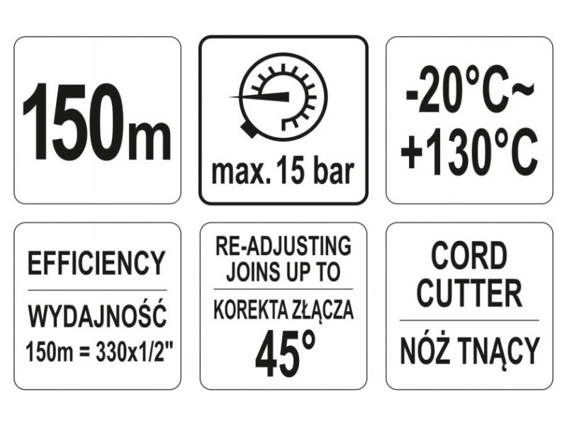 A YATO szál, amelynek hossza 150m, nagyon hatékony és lehetővé teszi akár 330 csatlakozó tömítését 1/2" átmérővel.