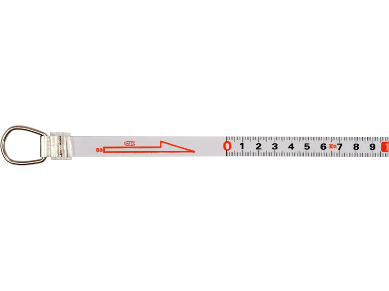 Visszahúzható mérőszalag acélszalaggal, amely mindkét oldalon nylon bevonattal van ellátva a jelölések kopásának megakadályozása érdekében. A kazetta ABS műanyagból készült, amely ellenáll a mechanikai sérüléseknek, és gumiborítással van megerősítve. Modernebb visszahúzó mechanizmus, a benne használt fogaskerekeknek köszönhetően jelentősen felgyorsítja a szalag visszahúzását, és egyidejűleg lehetővé teszi a szalag szabad kiejtését a hajtókar használata nélkül. fehér színű szalag milliméteres beosztás jól láthatóan jelölt nagy számok a szalag a II. pontossági osztályba tartozik pontos mérésekhez akár 30 m-ig