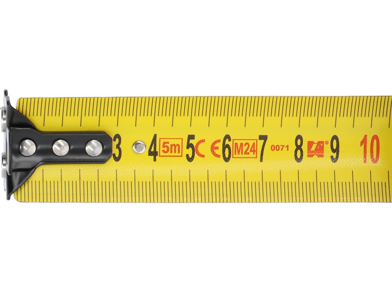 Acél szalaggal szerelt mérőszalag, 5 méter hosszúságban. A II. osztályú mérési pontosságban készült. Rövid zsinórral van ellátva, amit kényelmesen körbe lehet húzni a csuklón, vagy a mérőszalagot lehet rajta függeszteni.