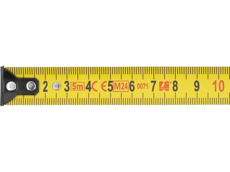 5 méter hosszú acél mérőszalag. Az II. osztályú mérési pontosság szerint készült. Rövid zsinórral ellátva, amit kényelmesen át lehet húzni a csuklón vagy fel lehet akasztani egy mérőeszközre. A mérés leolvasása a ház tetején lévő ellenőrző ablakon keresztül lehetséges.  szélesség: 19 mm hossz: 5 m merev acélszíj biztosítja az alátámasztás nélküli túlnyúlást a ház tartós és ellenálló ABS műanyagból készült milliméteres beosztás szíjzár gomb