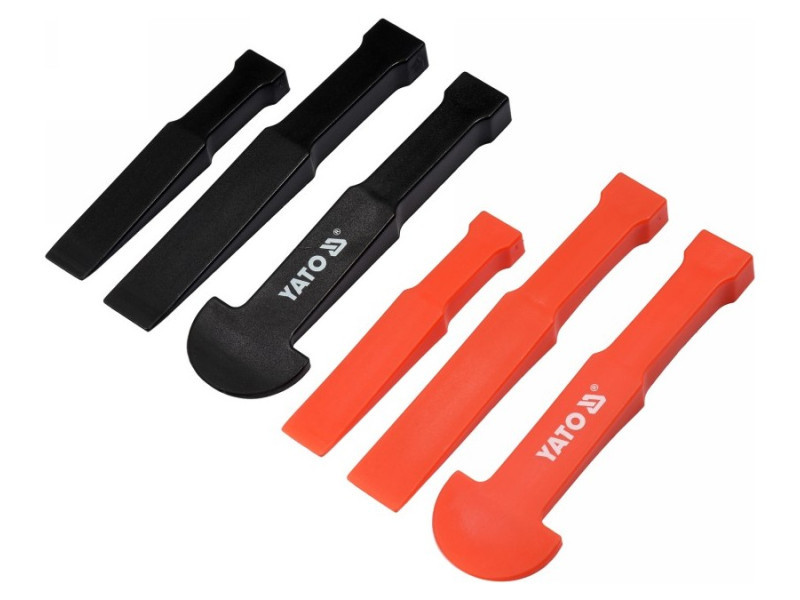 Egy műanyag vágókészlet, amely panelek, ragasztott elemek stb. szétszerelésére készült. Lehetővé teszik az elemek szétválasztását a károsodás lehetőségének minimálisra csökkentésével. Lapos és kerek pengék profiljai, méretek: 127 x 22,2 x 12,7 mm, 175 x 12,7 x 41,25 mm, 175 x 50 x 41,25 mm. A vágók könnyű kalapáláshoz vannak igazítva. Panelek, ragasztott elemek, autó- és bútor-kárpitok stb. szétszerelésére tervezték. Használati figyelmeztetések: Figyelem! Mindig használjon személyes védőfelszerelést a munka során.