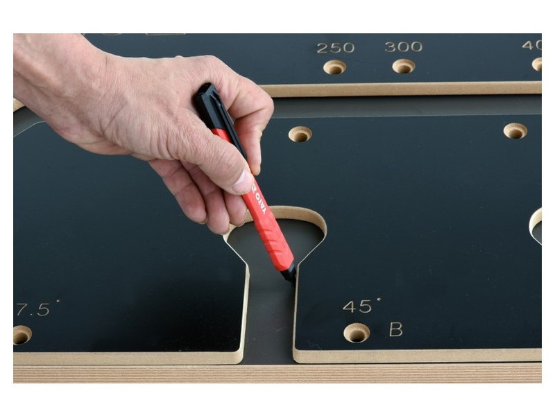 Konyhapultok stabil illesztéseinek készítéséhez. Egy marógéppel használva, 30 mm átmérőjű másoló gyűrűvel és 12.7 mm munkarészes ujjmaróval. A csomag a sablont és rögzítő tüskéket (4 db) tartalmazza.