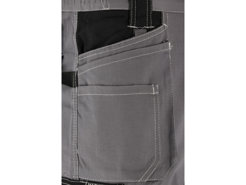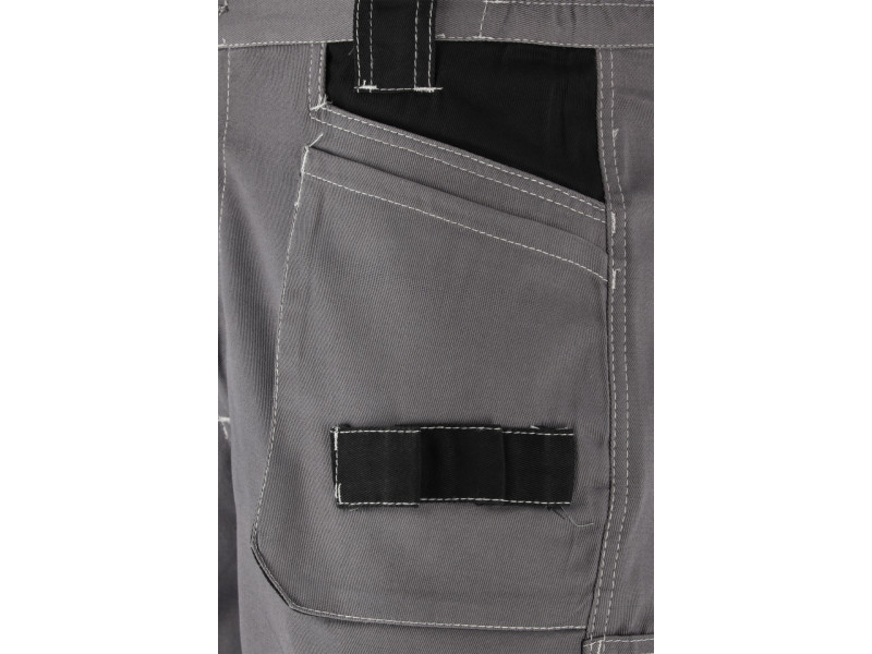 Rövid munkanadrág tíz zsebbel, köztük négy tépőzáras és számos textil hurokkal az alapvető szerszámok számára. A fő anyag egy magas súlyú pamut. A pamut bőrbarát, biztonságos az allergiások számára, és a modellben használt súlynak köszönhetően garantálja a jó szakadási ellenállást. Alapadatok: anyag: 100% pamut súly: 245 g/m² munkaszervezés: az öv alatt az elülső többfunkciós zsebek, köztük két fő zseb, három bevarrt zseb, és a bal oldalon bevarrt textil hurkok, pl. mérőszalaghoz, csavarhúzóhoz, fogóhoz A bal lábon   keskeny zseb, pl. tapétakéshez a jobb lábon, bevarrt textil hurok, pl. kalapácshoz a jobb lábon két zseb egy fedőlappal, tépőzárral rögzítve a hátulján az öv alatt két nagy zseb egy fedőlappal, tépőzárral rögzítve, tépőzár az övön az öv FRONT ELECTION FOR CARRABICE kulcsokkal További információ: Dupla varrások a könnyen szakadó helyeken, cipzárral és nagy gombbal az övön az öv oldalán bevarrt -in szoros gumi megfelel az (EU) 2016/425 rendelet követelményeinek a munkaruházat és kategória szempontjából.