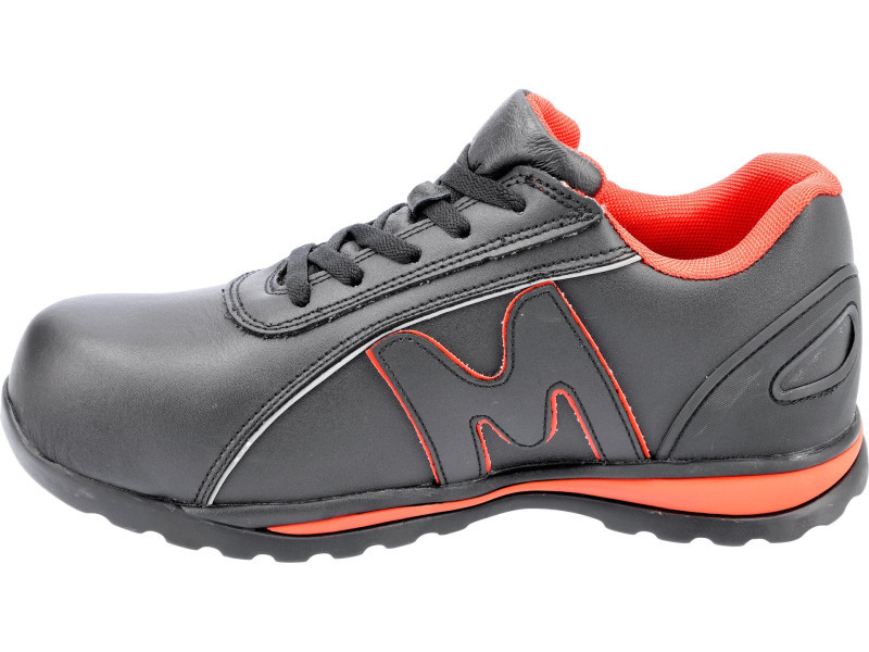 A bakancsokban nincsenek fémelemek. Mind az átszúrás elleni talpbetét, mind a gumitalp rugalmas, és - ellentétben a hagyományos PU talpú és acél talpbetétes cipőkkel - nem korlátozzák a lábközéptáji hajlítást. A természetes szemcsés bőr felsőrészét fényvisszaverő csíkok díszítik a viselő láthatóságának javítása érdekében.