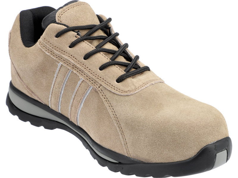 A Pera S1P sorozatú könnyű munkacipő kompozit ellenálló kompozit emelővel, rugalmas ellenrud beillesztéssel és különlegesen kialakított, a cipőt átfogó talprésszel rendelkező modell, amely megakadályozza a sérüléseket ezen a területen. A cipők nem tartalmaznak fémet. Mind az ellenálló beillesztés, mind a gumi talp rugalmas, és - ellentétben a hagyományos PU talppal és acél beillesztéssel rendelkező cipőkkel - nem korlátozzák a metatarsalis hajlításokat. A természetes velúr bőrből készült felső rész fényvisszaverő beillesztésekkel van díszítve, amelyek javítják a felhasználó láthatóságát. Alapadatok A felső anyag: velúr bőr Bélés anyag: Mesh háló Talp anyaga: gumi Lábvédelmi kategória: S1P csúszásmentes: SRC kompozit emelő - ellenáll az ütéseknek 200 J energiaig és a szorításig 15 kN-ig. Az alátét átszúrása éles elemekkel 1100 n nyomásig Az ütések felszívása a sarok alatt csökkenti a lábak fáradtságát hosszú séta során a talppal barázdák, olajálló, antistatikus és csúszásmentes, további információ, amely az emelőkön szerepel, megakadályozza a hegy végének a hegy végének a hegy végének a hegy végének a hegy végének a hátuljának a felső csatjának a sarkát. EN 20345 követelmények
