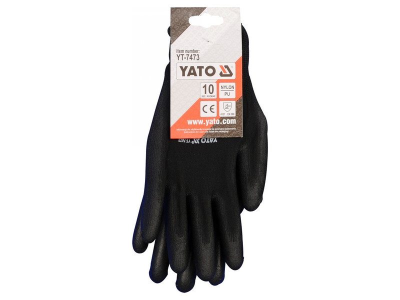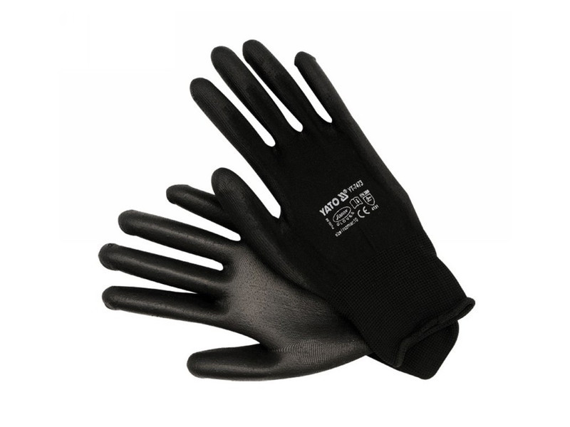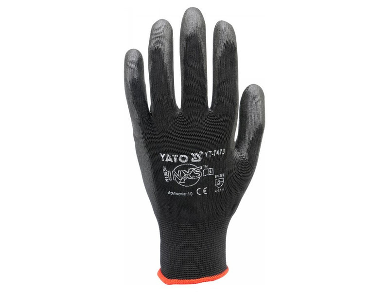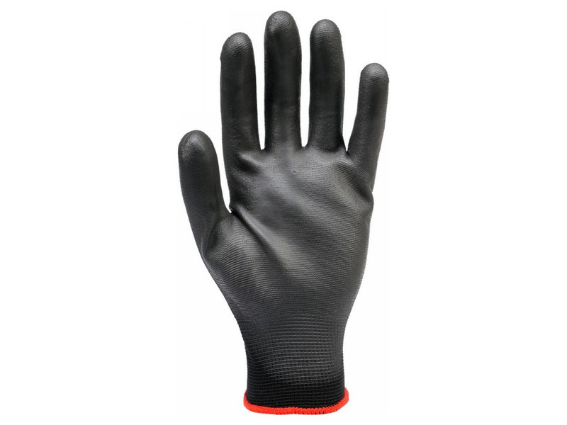 Védőmunka-kesztyű, fekete nylonból készült, a fogó rész poliuretánnal bevont. A vastagabb mint szokásos bevonat és a kiváló minőségű poliuretán biztosítja a legmagasabb kopásállóságot az EN 388 szerint. A kiváló minőségű nylonból készült varrat nélküli kialakítás növeli a szakadásállóságot és hosszabb ideig megőrzi a rugalmasságát. A finom 15G öltés, vagyis 15 öltés hüvelykenként, alacsonyabb súlyt és még jobb tapadást jelent a kézhez.