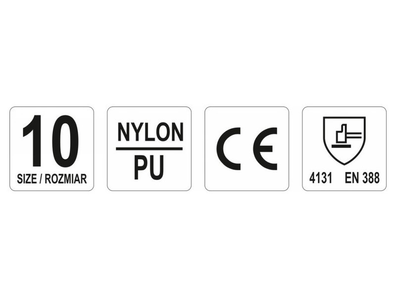 Védőmunka-kesztyű, fekete nylonból készült, a fogó rész poliuretánnal bevont. A vastagabb mint szokásos bevonat és a kiváló minőségű poliuretán biztosítja a legmagasabb kopásállóságot az EN 388 szerint. A kiváló minőségű nylonból készült varrat nélküli kialakítás növeli a szakadásállóságot és hosszabb ideig megőrzi a rugalmasságát. A finom 15G öltés, vagyis 15 öltés hüvelykenként, alacsonyabb súlyt és még jobb tapadást jelent a kézhez. fogó rész: PU bevonat felso rész: nylon öltés: 15G rugalmassága