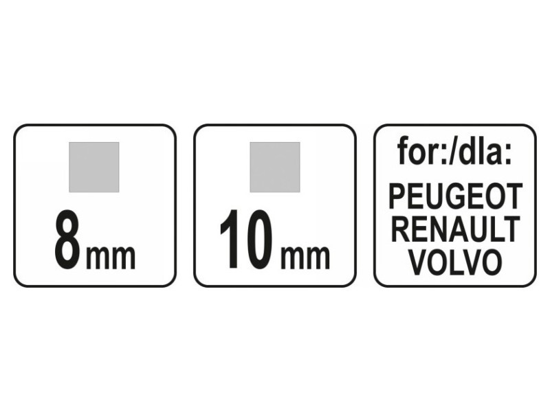 Kétoldalú kulcs, mely az olajleeresztő csavarok ki- és behajtására lett tervezve az olajteknőben.tervezve Peugeot, Renault és Volvo autókhoztartós acélból készültméretek: 8 és 10 mm, négyzetesprofilált forma. Használati figyelmeztetések: Figyelem! Mindig használjon személyes védőfelszerelést munka közben.