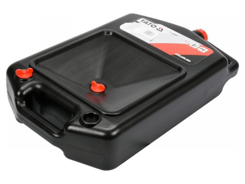 Könnyű, zárható tartály, használt olaj vagy egyéb üzemanyagok öntéséhez tervezve. - 3 fogantyú - tiszta öntés a csapon keresztül - polipropilénből készült - űrtartalom: 8 l - olajhoz, benzinhez, vegyszerekhez alkalmas