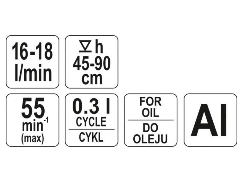 Egy profi dugattyús olajszivattyú, melynek kapacitása 16-18 liter percenként. Egy ciklus (kar mozgása) körülbelül 0,3 liter. 0,9 m szívószakasz. Munkaciklusok száma 55/perc, kapacitás 0,35 l