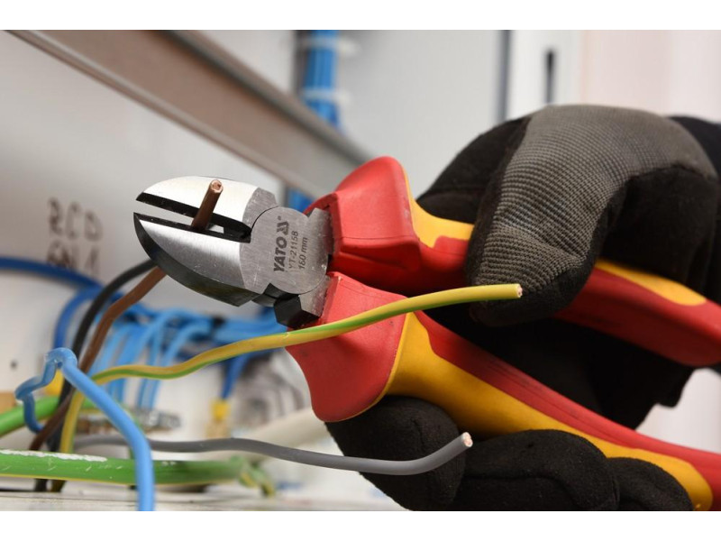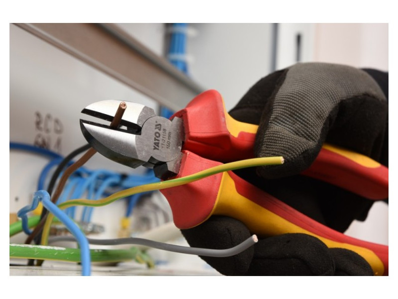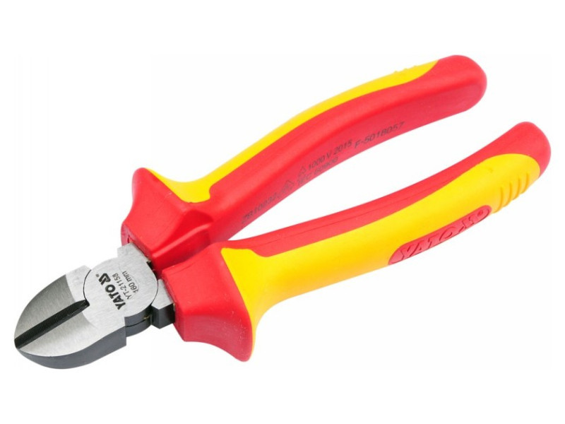 Oldalvágó fogó YT-21158 VDE szigeteléssel, kiváló minőségű CrV acélból készült. A pengén csúszásgátló barázdák húzódnak a vágóelem teljes hosszán.
