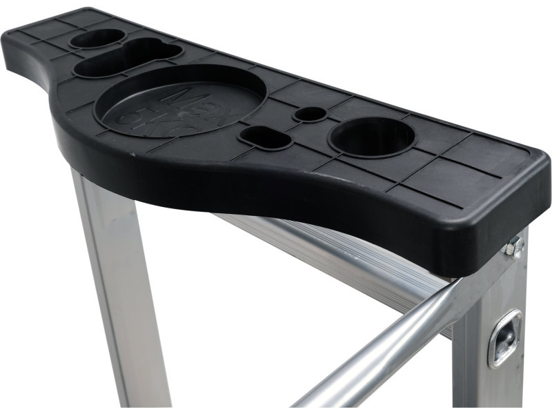 Összecsukható állvány alumínium-alapú ötvözetből készült. Összecsukható állvány alumínium-alapú ötvözetből Munka platform készült előkészített vízálló rétegelt lemezből A legfelső fok felett van rögzítve egy állvány biztonságos elhelyezésére szolgáló eszközök vagy festék tartályok számára Menedék készült vízálló rétegelt lemezből. /li> az állvány gumi csúszásgátló lábakkal és két kerékkel van ellátva a könnyű szállítás érdekében az állvány kinyitott méretei: 154 x 113.5 x 86 cm az állvány összecsukott méretei: 152 x 45.5 x 14.5 cm a munka platform méretei: 103.5 x 40 cm platform használati magasság: 89.5 cm nettó súly: 12.5 kg a startup GS/TUV által jóváhagyott
