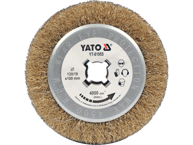 A YT-81953 Szatén Ecsetet úgy tervezték, hogy eltávolítsa a festékrétegeket, bitument, rozsdát és szennyeződéseket a fém felületekről. Hatékonyabban és gyorsabban működik, valamint hosszabb élettartamú, mint a csiszolópapír és más berendezések. Anyag: acél drót Átmérő: 120 mm Szélesség: 100 mm Rögzítő átmérő: 19 mm