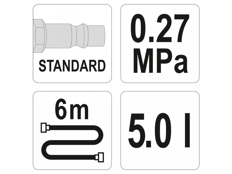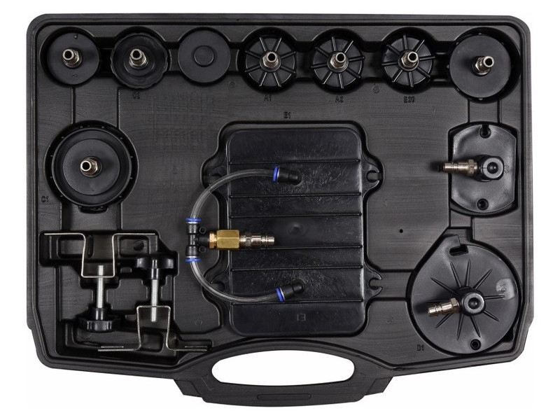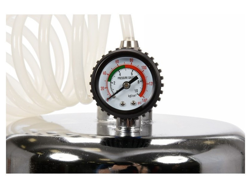 Készülék fékrendszerek és hidraulikus kuplungok légtelenítésére, leeresztésére és folyadékcseréjére. lehetőség arra, hogy egy személy néhány perc alatt cserélje ki a folyadékot, a rendszer levegőztetésének kockázata nélkül különleges, magas nyomású tartály 5 l űrtartalommal, amely előre feltölthető sűrített levegővel, így a készülék folyamatos levegőellátás nélkül is működik 6 méter hosszú tömlő a készlet tartalmazza a legnépszerűbb autómárkákhoz való csatlakozókat