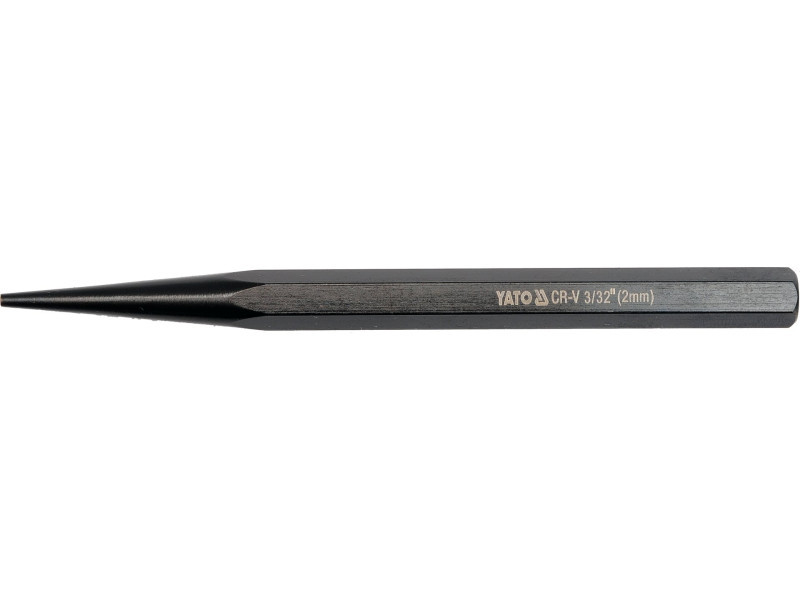 Kúpos, hegyezett munkarésszel rendelkező eszköz, 2,0 mm-es hegygel, 140 mm teljes hosszúságban, 9,4 mm-es hatszögletű profilú nyéllel. CrV6150 acélból készült, feketézett felülettel. A csapdörzsölő eszköz kisebb alkatrészekhez, precíz szegezéshez és egyéb műhelyalkalmazásokhoz lett tervezve.