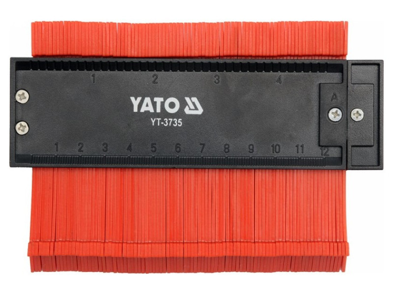 Levehető mérőeszköz műanyagból. Minták másolására és átadására tervezték az alkatrész anyagára. Különösen hasznos a burkolás és a befejező munkák során.