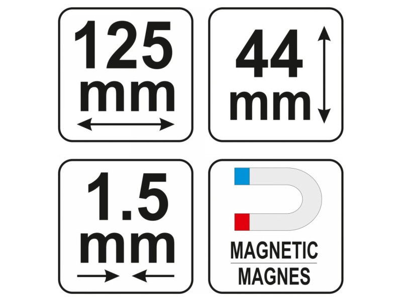 Levehető mérőeszköz műanyagból. Minták másolására és átadására tervezték az alkatrész anyagára. Különösen hasznos a burkolás és a befejező munkák során. Megkönnyíti a nehézkes helyeken, például csöveknél történő precíz anyagvágást. Mágnesekkel rendelkezik, amelyek metálfelületeken tartják. Megkönnyíti a nehézkes helyeken, például csöveknél történő precíz anyagvágást.Használati területek: üvegezés, általános építőmunkák, autókarosszéria munkák. Használati területek: üvegezés, általános építőmunkák, autókarosszéria munkák. Használati figyelmeztetések: Figyelem! Munka közben mindig használjon személyes védőfelszerelést.