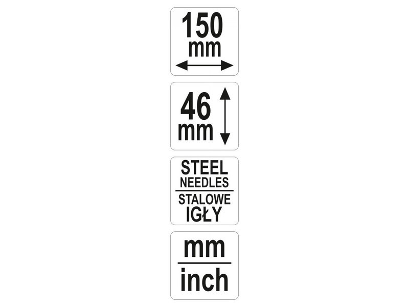 Pontos acéltűkkel készült mérőműszer, formaátvitelhez tervezve. szélesség 150 mm eltávolítható dimenziók maximális mélysége - 46 mm a testen állandóan jelzett milliméter és hüvelyk beosztások. Használata:Helyezze rá a tárgyra, és finoman nyomja meg a tűket a tárgy felületéhez.