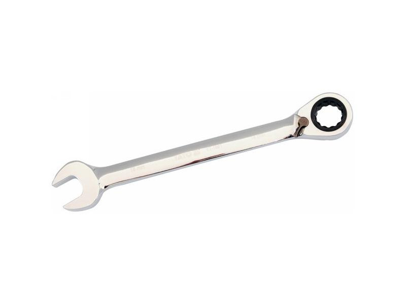 Racsni kulcs racsnival és irányváltóval. Autószerelő műhelyek és szervizek számára tervezve. kiváló minőségű CrV acélból készült krómbevonatú, polírozott, indukcióval keményített felület 72 fogú racsni és 12-szögű szem