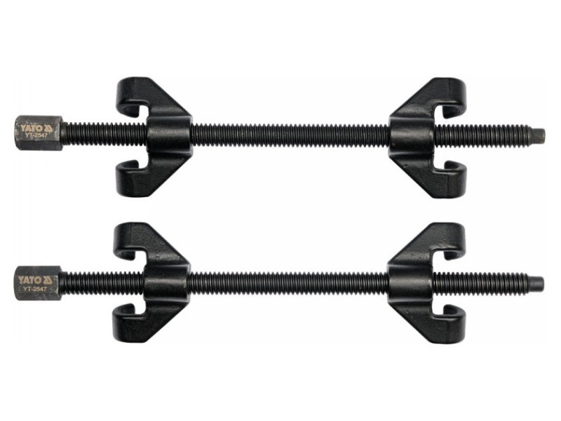 Professzionális rugóhúzók 355 mm hosszúságban, kifejezetten a MacPherson rudakban, többek között, található rugók biztonságos és kényelmes beszerelésére és eltávolítására tervezve. Elengedhetetlen minden autószerelő műhelyben. A munka biztonságos, köszönhetően a speciálisan kialakított, kétágú fogantyúnak.