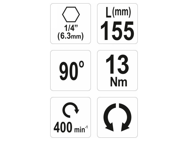 Szögadapter Yato márkájú fogaskerékkel. Elengedhetetlen nehezen hozzáférhető helyeken végzett munkák során. Szénacélból készült, műanyaggal bevont test. hajtás: hatszögletű hosszúság [mm]: 155 maximális nyomaték [Nm]: 13 maximális fordulatszám [RPM]: 400 mágneses hatszögletű fogantyú dőlésszög: 90° Használati figyelmeztetések: Figyelem! Mindig használjon személyes védőfelszerelést a munka során.