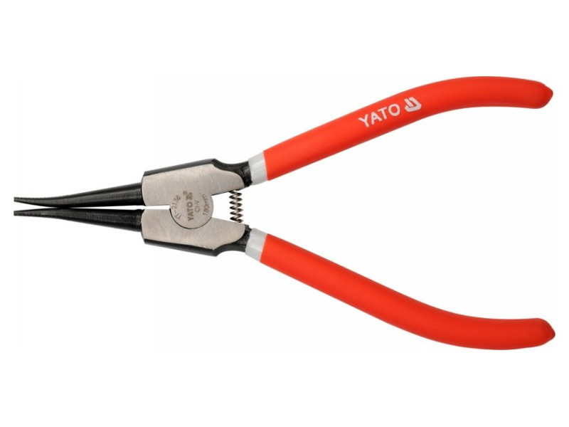 Egyenes külső Seger fogó, 180 mm hosszúságú. Seger rögzítőgyűrűk behelyezésére és eltávolítására tervezve.